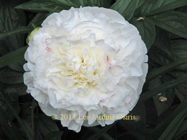 OSIRIS GRANDE SOEUR. Fleur simple blanche avec délicats reflets rose pâle. Hâtive. 120 cm. Plant robuste avec un immense feuillage. |