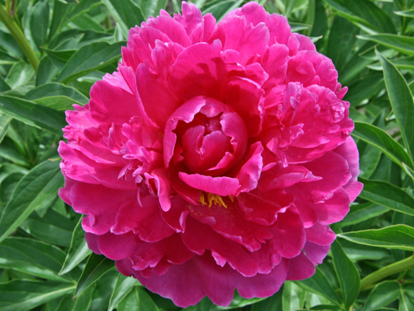 RED CHARM. Pivoine double, bombée. Rouge foncé vif. Corolle de pétales contenant une grosse boule de pétaloïdes pointus. Parfumée. Photo 1600 |