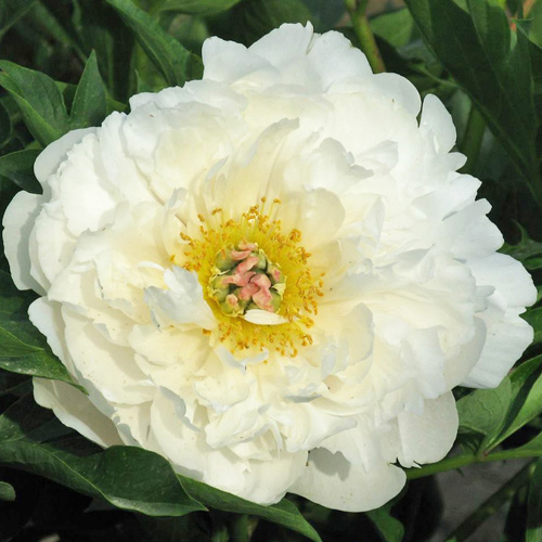 LOVE AFFAIR. Fleurs semi-doubles blanches affichant une symétrie presque parfaite. Mi-saison-tardive. 71 cm.