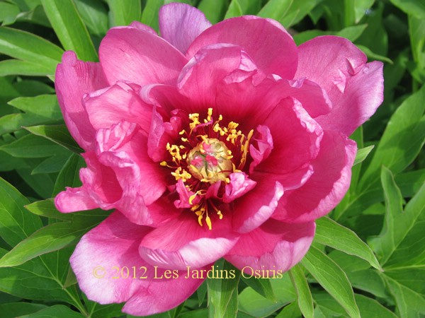 YANKEE DOODLE DANDY. Semi-double à double. Les pétales sont rose foncé à l'ouverture, son cœur devient plus apparent alors que les pétales deviennent plus pâles. Mi-saison. 80 cm. Photo 1600